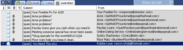 About half the spam that remains is of the illiterate variety: