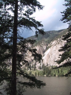We found the lake maybe half an hour before a thunderstorm rolled in, hence the bad light in the photo at left. It's intended as a fishing lake and a place of peace and quiet; only human-powered boats are allowed. The water was 63°, which is on the low side of the envelope for swimming, though I've been in much colder. We might even have tried it, as all necessary gear was in the back of the 4Runner, but the lightning pouring out of the sky gave us pause. We're in the thick of the Rockies here, and there are probably more "fourteeners" (mountains higher than 14,000 feet) visible from one place than anywhere else in the continental US. Which bring me to a question that occurred to me while gaping at the mountains: Why does there appear to be a sort of 15,000 foot cutoff on mountains here? Mt. Whitney (California) tops the list at 14,494 feet, and there are no fewer than 73 fourteeners in the lower 48nearly all of them in Colorado. (Not one in Montana!) One would think there'd be a maverick sixteener and maybe two or three fifteeners, but no: We have 73 mountains crowded up against a sort of rock ceiling. The height distribution seems unlikely. Are there geological principles at work here that I've never heard of? Cripes, I have to slap myself soon or I'm going to be wanting a canoe. |