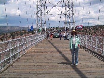 Today, that run of track only serves the tourist train that runs excursions along the bottom of the Royal Gorge, a short but breathtakingly narrow canyon cut by the Arkansas through the red granite strata here. We intend to take that trip someday, but today we chose to sneak up the little-used south entrance to the almost indescribable Royal Gorge Bridge Park.