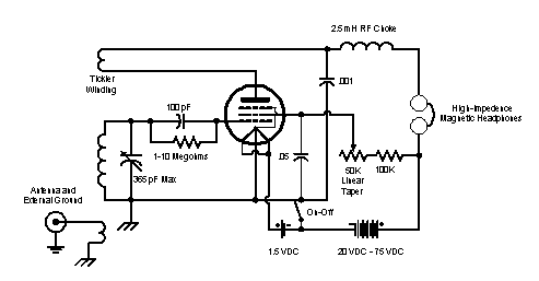I drew up the circuit for the 3V4 regen, and here it is. Sorry about the fuzziness. It looks way better in Visio, but despite my protestations for years, Visio (now owned by Microsoft) has never created a plug-in or any other useful mechanism for publishing Visio art on the Web. Creating good technical art for the Web is a remarkably persistent problem. I could do it in Flash, I guess, but that's shooting gnats with a Howitzer. I don't need animationjust a widely-supported static vector art format. None is in sight. (Take note that I said widely supported.) So we're stuck with cruddy GIFs and JPEGs and everybody loses. Sometimes I think the whole Web ought to be redesigned, or at least rethought from the browser perspective...but I started out talking about one-tube radios.
