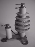 Problem number 2 on my ailing one-tube radio is that the circuit I used in building it demands a set of magnetic headphones with much higher sensitivity than the ones I have. Back in the 1920s and 1930s, loudspeakers were a bit of a luxury, and most people listened to the radio with headphones. These phones (called "cans" by radio nerds of the era) used extremely fine wire to create a magnetic field that induced vibrations in a thin soft iron membrane. The more windings of that thin wire, the more sensitive the headphones were. Now, the headphones I have are WWII surplus, and while they're well-made, they were not designed for use with the crude 1-tube radio designs that were popular in 1930. They were created for use with multi-tube military radios, and were built for ruggedness, not sentivity. So they don't create a very loud signal with the 1-tuber I put together ten years ago. This is indeed a problem, as I don't know where to get a set of those exquisitely sensitive "cans" so beloved of 1930's radio nerds. So I may have to redesign the radio a little, to bring its output level up to the point where my WWII headphones can do a reasonable job. This will take a little research. I'll report back as this project progresses. |
