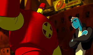 The idea has great promise: Bill Murray, in the live-action portion, plays Frank, a slovenly widower with an idealistic young daughter. Frank's body is shown in cartoon animation as the City of Frank, complete with a Mayor (voiced by William Shatner) a police chief, mobsters (assorted germs) and all the other upright and downright citizens of a big city. Osmosis Jones (voiced by Chris Rock) is a young white blood cell (inexplicably drawn in blue, as shown here) on the police force, not quite a rookie but audacious, snotty, and, well, a little careless. Jones routinely patrols the Mouth, where one day a peculiar germ appears. This is not any ordinary germ, but Thrax, a.k.a. Muerta Roja (Red Death) who intends to take Frank out entirelykill him, and do it in record time. Jones figures this out after awhile, but nobody believes him. Instead, for a partner he is saddled with the large and powerful but mostly clueless Drix, a cold pill, voiced brilliantly by David Hyde Pierce. The two of them tool around the Superior Vena Cava (a freeway) in Jones' lopsided patrol car, searching for Thrax and having reparteé. Jones tries gamely to teach Drix how to be cool and fit in with the lowlife that they're trying to quiz about Thrax, and that's probably the best part of the film. (While laying about him in a bar fightinside Frank's enormous forehead pimpleDrix is shooting germs while shouting in a perfect Niles Crane voice: "Yo mama! Yo mama! Yoyo Ma!") Most of the rest of it is paceless and boring, even with good animation. Great lines are few, chuckles thin and far between. Far too much of the film's humor cooks down to fart and barf jokes. It's not as bad as some films I've seen, but for a concept like that I had expected much better. It was hard to like the Frank character. He was so completely obnoxious that dying might well be good for him, and here and there I was tempted to root for the virus. Murray can be way funnier, even with an obnoxious character to playsee Groundhog Daybut he can only do his best with what he's given, which here was precious little. Go ahead and see it, especially if you rent it cheap, but have a few beers or some wine first, and you'll probably enjoy it more. Writing is everything! (When will they learn?) |