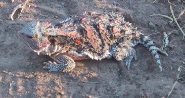 we saw him: A horned toad, shown at left. I'd never seen one in the wild