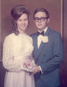 I spent much of the Summer of Love in my mother's garage, tearing apart the mountain of broken radios and TVs that my neighbors had unexpectedly given me in response to a free ad that I had placed in the little shopping news sheet that showed up in our mailboxes every Wednesday. And that was where I was early in the afternoon on Thursday, July 31, 1969. I had a line of beer boxes arranged in a semicircle, one for tubes, one for resistors, one for capacitors, one for transformers, and one for none-of-the-above. Snip-snip-snip went my dykes (which is what we really called them back then) and the boxes filled, hour by hour. About two PM my best friend Art Krumrey rolled up our gravel alley on his bike, and told me that there was a Teen Club coffeehouse down at the church that night, and that we both should go down there and meet some girls. He was without a girlfriend at that point, and it was becoming increasingly clear to me that my girlfriend Marianne was becoming increasingly impatient with my eccentricity, and was sticking with me because there was nobody else on the horizon for her. I protested that there were still a lot of TVs on the pile, and that I wasn't especially good at meeting girls without formal introductions. Every girl I had ever dated up to that point had been a blind date or setup of some kind. Nonetheless, Art (as was his habit) twisted my arm until I shrugged and said, Oh, all right. And at 7:30 PM we walked down the parish hall stairs at Immaculate Conception Church on Talcott Road and surveyed the territory. Coffeehouses were a Sixties thang much beloved by churches and usually held in church basements, and that is what we saw as we scanned the scene from the third stair from the bottom: A folksinger sitting in a corner strumming on a guitar, cushions and bean-bag chairs to sit on, bowls of popcorn and Chex mix here and there, and the sort of clean-cut teenagers who still had the church on their maps somewhere. (No coffee, though. Most of us still weren't allowed to drink it, and I found it loathsome until my late thirties.) Art wasn't pleased with what he saw. "These are all freshman girls," he said, as though that disqualified them utterly. I had come under protest, but now I was warming to the idea. Maybe freshman girls would look upon an eccentric high school junior with something other than disdain. Art continued down the stairs and vanished into the throng, searching for girls who (like us) would be entering their senior year in another month. I mostly wanted a girl who would genuinely like me, and wouldn't object to my peculiar enthusiasms. (Electronics, astronomy, science fiction, kites.) This had been a problem with my first three girlfriends, and I was beginning to wonder if it was inevitable. Art was wrong. These were not all "freshman girls." Tom Clark, who had been in my eighth grade class, was sitting close by the stairs, along with Jackie Ropski, another girl from my grade school, who was frighteningly good lookingbut hey, there were other girls with them, and Tom and I had been friends in grade school. (Sort of. A little. In third grade.) So I sat down next to Tom as though he were my long-lost brother, nervously said hi to Jackie, and looked around. Ulp. I was sitting next to perhaps the most beautiful girl I had ever seen, anywhere, ever. Perhaps because of where I had chosen to sit, Jackie introduced me to her good friend from Resurrection High School, Carol Ostruska. Carol was quiet by nature, and I was dumbstruck to be beside her, so there wasn't much conversation between us as the time went by. Topics floated past us, carried by the voices of others there: Pop music, sports, summer jobs, parties, movies...and I was lost in the thick of a culture I had never strongly bonded to, wondering what to do next, and hoping that whatever it was, it would involve this remarkable young woman sitting only a few inches to my right. Art came back about then, and, untroubled by shyness, sat down in the thick of our group and took up a leading role in the conversation. He seemed interested in Carol; in fact, once introduced (again, by Jackie) he appeared to be searching for a conversational opener. The topic at hand was movies, and somebody was talking about the musical Oliver, and after that some art film I had never heard of. And then, unexpectedly, Carol spoke up: "Has anybody seen 2001: A Space Odyssey? It's supposed to be really deep, but I haven't read anything good about what it's supposed to mean." Art opened his mouth. No way, dude! I had already seen 2001 five times. Art hadn't seen it yet at all. And so, teetering on the edge of panic and exhilaration, I seized the moment: "Sure. It's about transcendence, and humanity's search for a higher power..." Right then the folk singer returned from his break, and began his cover of "Let's Get Together," the iconic song of the summer of 1969. Against that, my response faded into the noise, as all heads turned toward the singer and, with his encouragement, many joined in. I leaned over to Carol, and, heart in my throat, said the bravest and most pivotal thing I have probably ever said in my life: "Hey, there's more to it than that, but it's hard to explain in just a few words. If you're interested, we could go see it, and then talk about it more over a pizza." She smiled, and nodded, and in the next few minutes she gave me her phone number, and we agreed that Saturday would be good. Saturday was good, as was the Saturday after that, and the one after that. I took her out flying a kite I had made, and she didn't gag. I spoke of science fiction, and explained how equatorial telescope mounts allowed telescopes to follow the stars, and worked harder than she ever knew at being "normal." (Case in point: I hated pizza...but figured it was damned well time I developed a taste for it.) I was by no means the first or only boy she ever dated, but she kept coming back to me, because I had a kind heart (I typed all her sen