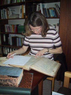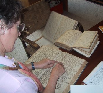 I covered sheeet after sheet with notes, and Carol went through the separate index book someone had produced (though it was a little spotty) compiling lists of references to family members. There are a lot of people I had no knowledge of before, and the oldest reference, describing the death (at age 51) of Christoph Duntemann, allowed us to calculate his year of birth to 1686 or 1687. Other parts of the family tree will have to be revised; there are no fewer than three Andreas Duntemanns in the records (one being the son of the other, and a third present in only one reference and linked to no one else) and I had them all confused. The name of a woman I had known as "Hannah" was really "Johanne" and I had her year of birth wrong, and two other women are simply not present in the old records, which raises the question of where and when they were in fact born.