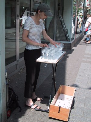 Mondays are bad days to see things in Germany; most museums (including many of the great churches, sigh) are closed. We wanted to see Grosse ("big") St. Martin's, a fine old church less than a mile from the Dom, but no luck. So Carol and I wandered the Old Town area, picking up last-minute souvenirs before we began the long trek home tonight. Cologne isn't as picturesque as many other old European cities because the Allies mostly leveled it during the last days of WWII, so with only a few isolated exceptions, the buildings are only fifty-odd years old. The Dom was largely spared, but its minor war damage is apparent from almost any angleincluding the new stone and new statues that have been carved in the last few decades. We looked over a railing to a little yard where blocks of raw stone and partly-completed restoration components (finials, statues, blocks) rested, awaiting another day's work in a process that has been underway since the end of the War, and will continue for a long time to come. Kölners say that when the Dom is finally and fully repaired, the world will end. We needn't worry...