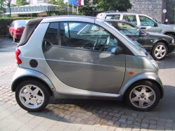 Several people have sent me notes describing Daimler-Chrysler's smart Car (the lower-case "s" is deliberate) which is the teeny little thing I photographed in front of the Regency Hyatt Cologne a few days ago. (See my June 25 entry.) For more info on the smart, see here. There is actually a lot of Web activity out there, which I might have found had I the time to look. The vehicle is not currently available in the US, but my friend Pete Albrecht tells me he's seen one zipping around Huntington Beach. It's made in France by a division of Mercedes and isn't really intended for high-speed highway driving. Nonetheless, we saw several in the right lane on the German autobahns, happily going about 100 km/h.