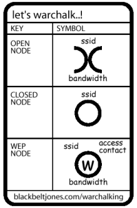 For those of you unfamiliar with American life in the 1920s and 1930s, hobos (wandering workers who took unskilled jobs for short periods of time, back when employment was more a handshake and not so much a massively government-regulated thing) developed a secret symbology for communicating "the lay of the land" for other hobos. These chalk symbols indicated where the vicious dogs were, where the generous people lived, and where police tended to hang out, and other things like that. Warchalking is the marking of physical places in real (not virtual) chalk to indicate where accessible 802.11 wireless networking nodes are. A Brit named Matt Jones coined the term, and it's still mostly a British phenom. The card shown here is Matt's, and his site hosts a vigorous dicussion of what additional symbols should be. (So far, what I've shown here is mostly what is used.) I myself don't get into urban areas with lots of WiFi nodes very much, but when I do, I'm going to be watching for these symbols. The only open WiFi network I've ever seen was the one I used at the Cheyenne Mountain Resort (see my May 12 entry) and while I paid for the use of the wireless PC card for my laptop, the bandwidth itself was not separately charged for, and the resort said nothing about people who owned their own wireless cards. I don't have one yet, but I may get one just for the fun of it. There are several unresolved issues here, especially the one of using WiFi nodes that are unintentionally open. (The other is that marking things with chalk is probably close enough to grafitti to get you a ticket or worse in some of the twitchier places in the world.) Still, and even from my parched rural outpost where the houses are far enough apart so that wardriving would take all night between "found" nodes, it's one of those unexpected things that pops up now and then and keeps the world from becoming fatally boring. |