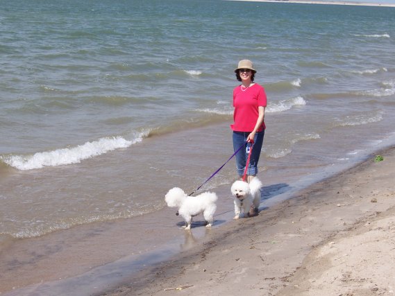 and 74° on the brown-sand south shore (above), where northerly