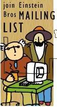 But I like Einstein's for yet another reason: They have a marvelously original branding strategy. They created two fictitious characters, Melvyn and Elmo Einstein, as loose specifications, and then allow different artists to interpret the brothers according to their own artistic styles. So whereas Einstein Brothers has an "official" logo, inside the restaurant, what you see are drawings of the brothers by many artists on many media, from the coffee beans packaging to murals and posters on the walls. The key characteristics are these: Elmo is the bald guy with glasses and two tufts of hair over his ears, and Melvyn the guy with the big mustache, long beard, and hat. As long as the drawings have those recognizable elements, the rest is up to the artists' imaginations. It works. It really does, with wry humor and perpetual novelty. And hey, the coffee's darn good, as Melvyn says. Highly recommended. |