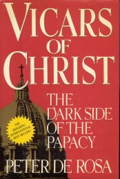 Huh? Yeah, I'm puzzled too. The book was originally published by major NY imprint Crown Publishers in 1988 for $19.95 in hardcover. And although the cover is a little lurid and the burst (which you can't read here) says "The shocking international bestseller!" the book is a straightforward if slightly breathless popular history of the bad guys in the long list of occupants of the Throne of Peter. Other books like this have been written; I point you to E. R. Chamberlin's 1969 book The Bad Popes, which covers a lot of the same territory and is an excellent read as well. It's not currently in print, but it's in most libraries where I've looked for it and used copies can be had for as little as $10 on Alibris. So what happened to Peter De Rosa? Several people I've spoken to tell a nearly unbelievably story: That the Roman Catholic Church bought the entire press run of the book soon after it was published, and literally paid the publisher to put it out of print. I'm not sure whether I believe thisit smacks of urban legendbut if the book was in fact a "bestseller" as recently as 1988 there's no reason for used copies to sell for $300. I don't see anything in the book I haven't seen or heard elsewhere; hey, is it a secret that most popes of the Middle Ages didn't believe in God and used the papacy as a path to power and wealth? C'mon, any student of Church history knows that. So what's really going on? I'd like to know, and if you have any clue please share. And certainly I want the book for my library, but at this point I'll pay only $50, no more. That's why I'm borrowing the book. |
