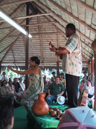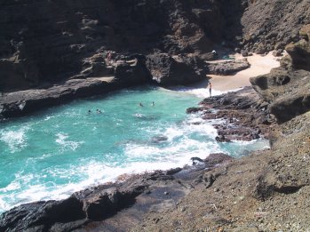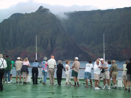 Well, maybe you just had to be there. Certainly the guy giving the lecture was an ace with a ukulele, and pretty fair with a conch shell as well. We saw some other short sessions, and part of a canoe pageant, but with a only a few hours to fight the huge crowds, most of it was left unseen. The best part of the excursion, in fact, was a scan past the beaches of Oahu, which made my mouth water, and I'm not even a surfer. We are just going to have to come back and do them in detail. And in the meantime, I have to get to bed. The ship is off to Kauai tomorrow, and another early bus trip, this time to see the Grand Canyon of the Pacific and the famous Na Pali coast. More as it happens. |