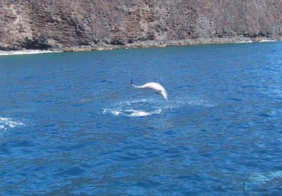 The ship has been working its way back eastward through the islands, and today was our last stop, at the southwestern corner of the Big Island, along the Kona Coast. As with yesterday, we took a snorkel trip on a sailing catamaran to some lava formations just off the coast, where a coral reef will doubtless be someday. Hawaii, as big as it is, is also extremely young as islands go, and may not be much more than a million years old. It may be younger than that, in factand it's slightly weird to think it might be younger than homo sapiens itself. The big deal today was our night pass around the southeast coast of the Big Island, where molten lava from Kilauea still runs from a vent on the side of the volcano down to the sea, as it has been doing since 1982. It took some time to get there, but by 11:30 PM we were about two miles off the coastline, and seeing an intermittent red-orange river that stood out as the only visible thing in a field of inky blackness that embraced both the sky and the sea. Everybody tried to get photos and nobody managed, at least with digital cameras. Jerry has a Canon Rebel with a fast lens, but his light meter told him it would take a 15-second exposure to get something useful, and that's a non-starter on a moving boat. I did manage to see the lava flow in the LCD viewfinder of my Canon Elura camcorder, but the Elura has been malfunctioning and I don't think the image, meager as it was, recorded on the tape at all. Once we have reasonably priced 4 GB compact flash cards, there won't be a lot of reason to use magnetic tape in camcorders anymore, and that will eliminate a lot of mechanical complexity and a great many failure points. In the meantime, we have left Hawaii and are now back on the open sea, steaming eastward on the five-day trip home. We're leaning into a near-gale (force 7) wind, and everybody's expecting a slightly slower and fairly choppy passage back to San Diego. I've got a snootful of meclazine and will probably not be as boundlessly creative as I'd like to be over the next few days, but the chance to simply relax is unusual and much appreciated. |