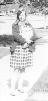 woman, the street, the pavement, the houses, and even the weeds
