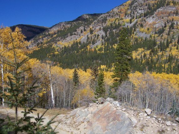takes flowing down the mountains by the bands of yellow aspen groves.