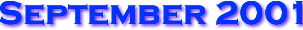 Yup. Driving to Chicago. Taking off tomorrow AM. Is this nuts or what? And what are we to make of the events of Tuesday morning? I still can't get my head fully around the enormity of what was done to usnor the enormity of the long-term effects if we strike back. And so I find myself dwelling on trivia and minutia, like the firm conviction that one or more teams of remorseless journalist types are holed up in a hotel room somewhere, desperately striving to be the first out with a book on the tragedy. It happens every time there is some unprecedented event, and this qualifies, in spades. Also, it took only a day or so before people were offering "souvenirs" on eBay, all fragments of the buildings picked up somehow (one must wonder if all were in fact genuine) after the various buildings' collapse. EBay quickly pulled all the items offered. Bad taste, I'm surebut will the buying and selling of WTC fragments be made illegal? I don't expect to be on the Net while we're en route, so there will be some delay getting entries posted here over the next week. Figure five days. I'm not one of those guys who can drill through a thousand miles at a sitting. |